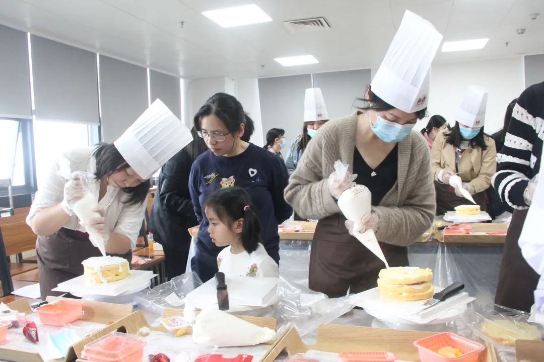 參加活動女員工們在老師的指導(dǎo)下,一起學(xué)習(xí)制作蛋糕裱花的方法和技巧,涂抹奶油、裱花裝飾,擺放水果,結(jié)合自己的想法精心裝點自己的創(chuàng)意蛋糕,蛋糕陣陣飄香,歡樂連綿不斷。在一片歡聲笑語中,大家完成了蛋糕的制作,為節(jié)日呈上最甜蜜的祝福。