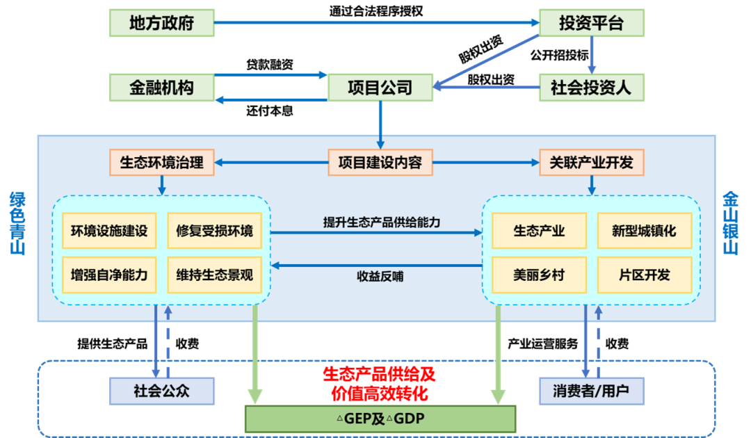 《關于推薦生態(tài)環(huán)境導向的開發(fā)模式試點項目的通知》 (環(huán)辦科財函〔2020〕489號)中提到:EOD模式是以生態(tài)文明建設為引領,以可持續(xù)發(fā)展為目標,以生態(tài)保護環(huán)境治理為基礎,以特色產(chǎn)業(yè)運營為支撐,以區(qū)域綜合開發(fā)為載體,采取產(chǎn)業(yè)鏈延伸、聯(lián)合經(jīng)營、組合開發(fā)等方式,推動公益性較強、收益性差的生態(tài)環(huán)境治理項目與收益較好的關聯(lián)產(chǎn)業(yè)有效融合,統(tǒng)籌推進,一體化實施,將生態(tài)環(huán)境治理帶來的經(jīng)濟價值內(nèi)部化,創(chuàng)新性的項目組織實施方式。