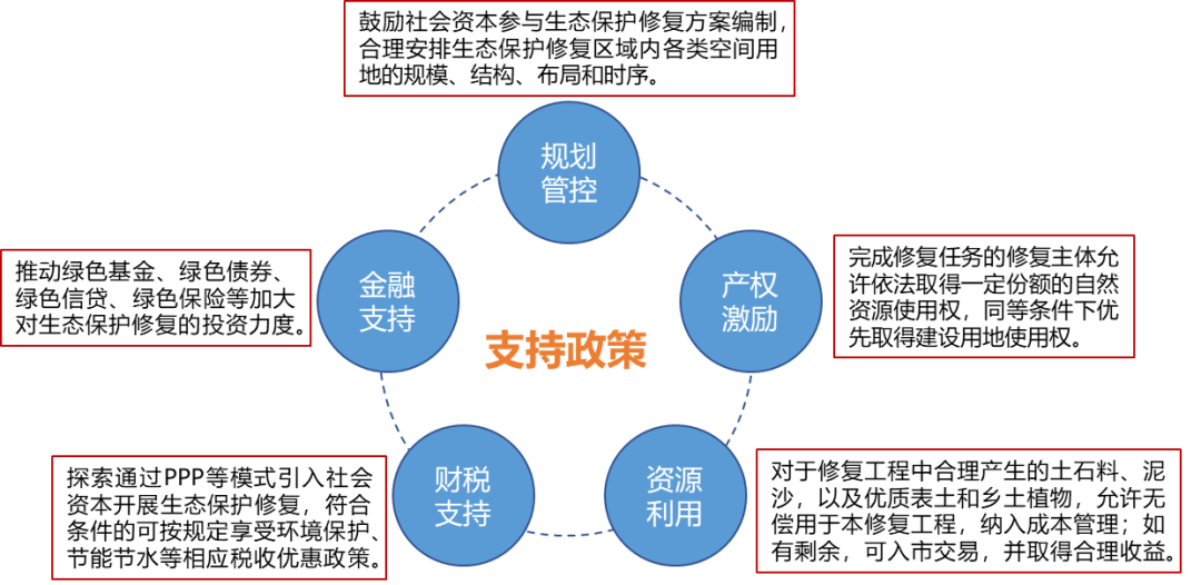 (一)國務院辦公廳發(fā)布《關于鼓勵和支持社會資本參與生態(tài)保護修復的意見》〔2021〕40號中提出社會資本可通過以下方式在生態(tài)保護修復中獲得收益: