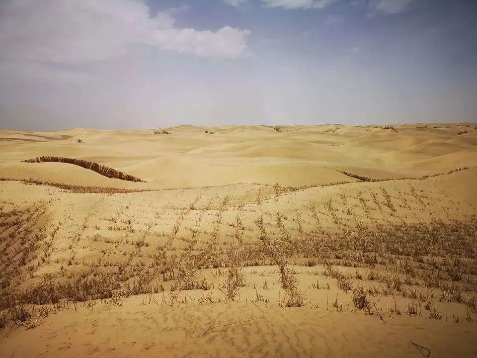 群克位于塔里木河南側(cè)約6.5km處的塔克拉瑪干沙漠北部邊緣,工程區(qū)地面標(biāo)高在870.0~910.4m之間,地形呈現(xiàn)為新月形沙丘、新月形沙丘鏈,復(fù)合型沙山、長(zhǎng)條狀沙丘、金字塔形沙丘等形態(tài)。