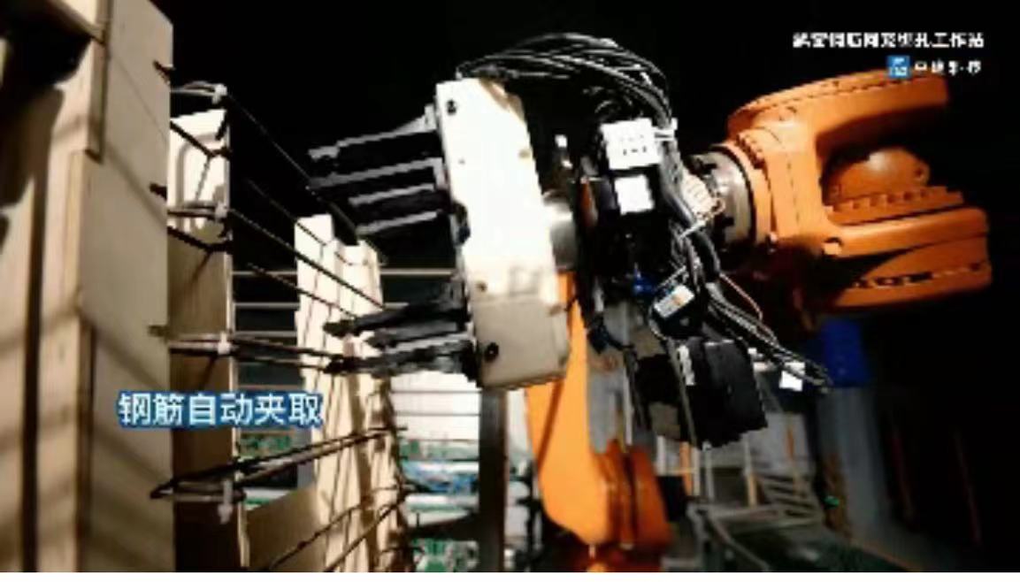 ▲中建科技智能鋼筋綁扎機(jī)器人