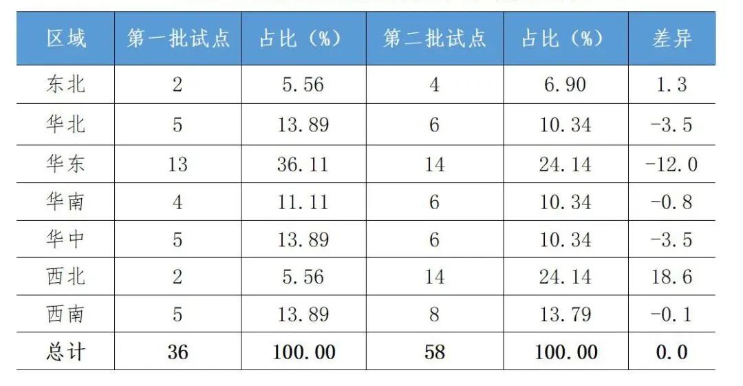 表1-1兩批EOD試點(diǎn)項(xiàng)目地區(qū)分布數(shù)量對(duì)比