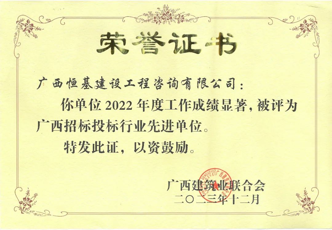 2022年度廣西招標(biāo)投標(biāo)行業(yè)先進(jìn)單位