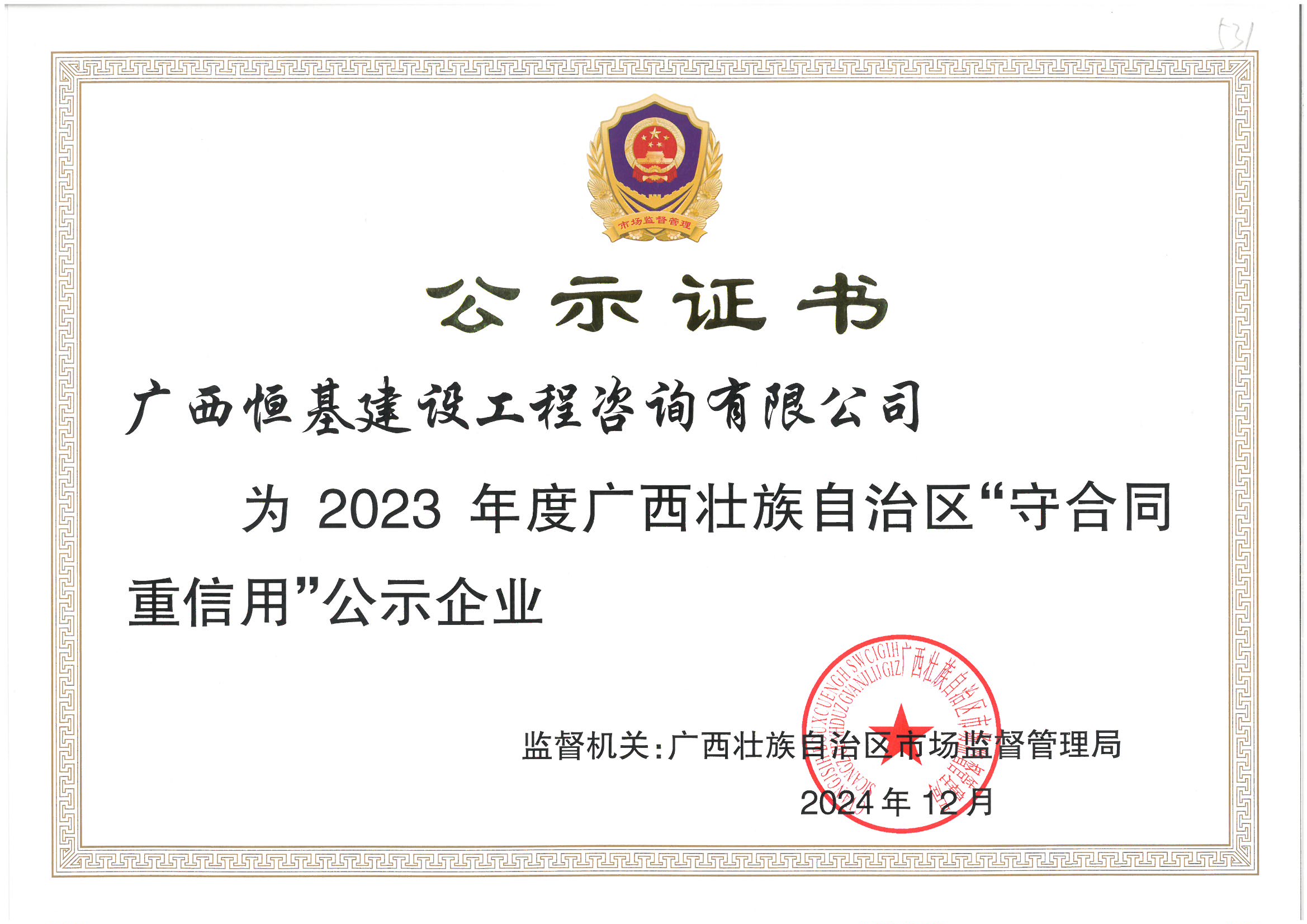 2023年度廣西壯族自治區(qū)“守合同重信用”公示企業(yè)