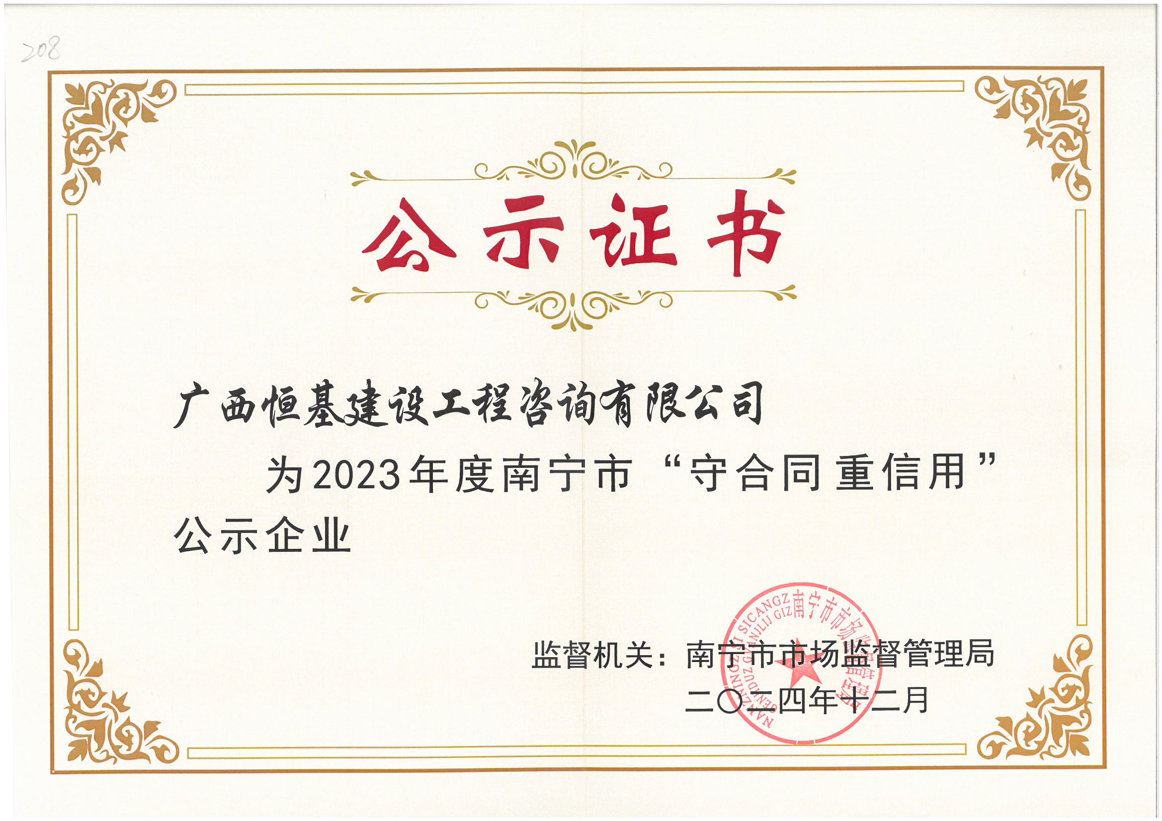2023年度南寧守合同重信用企業(yè)