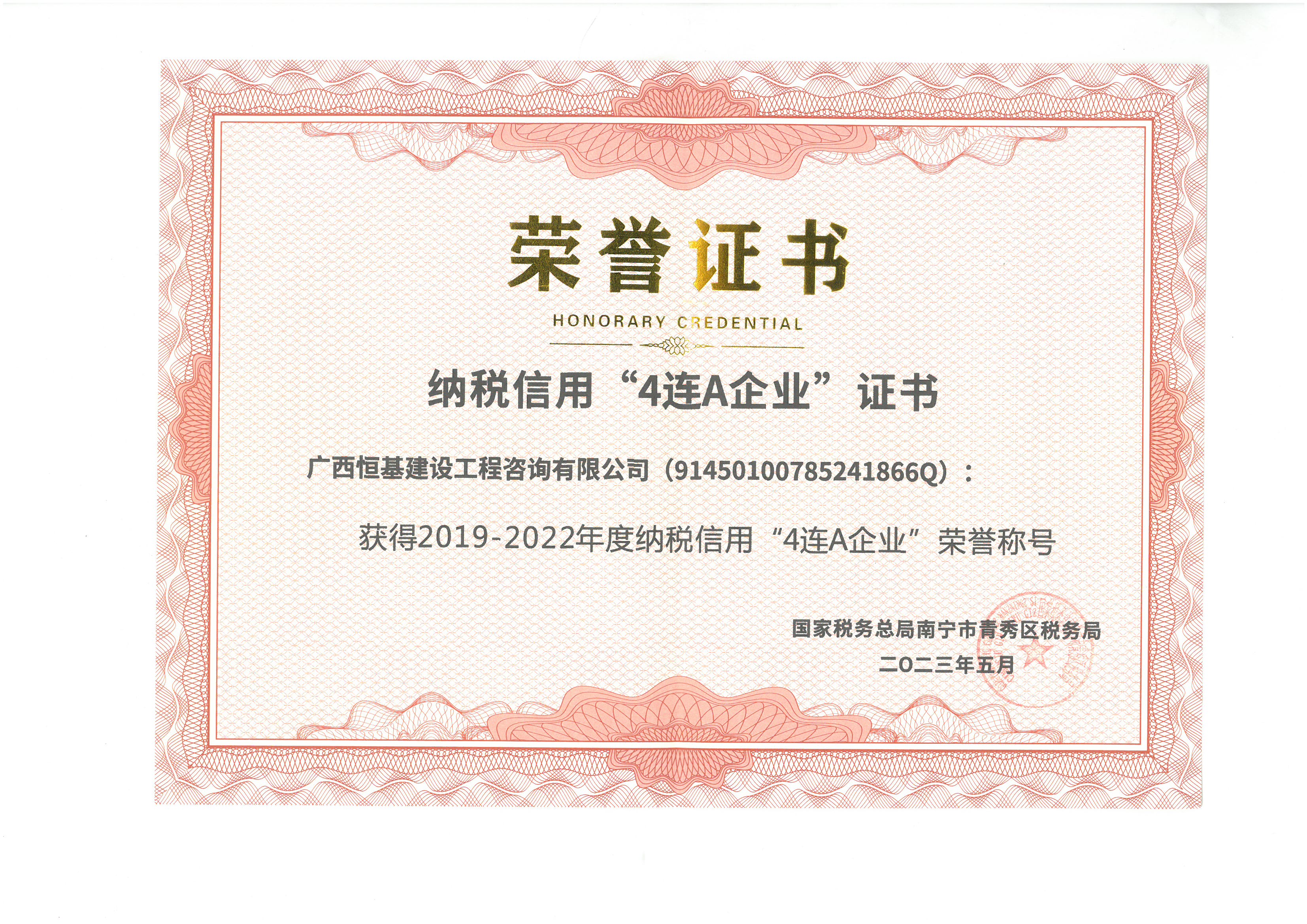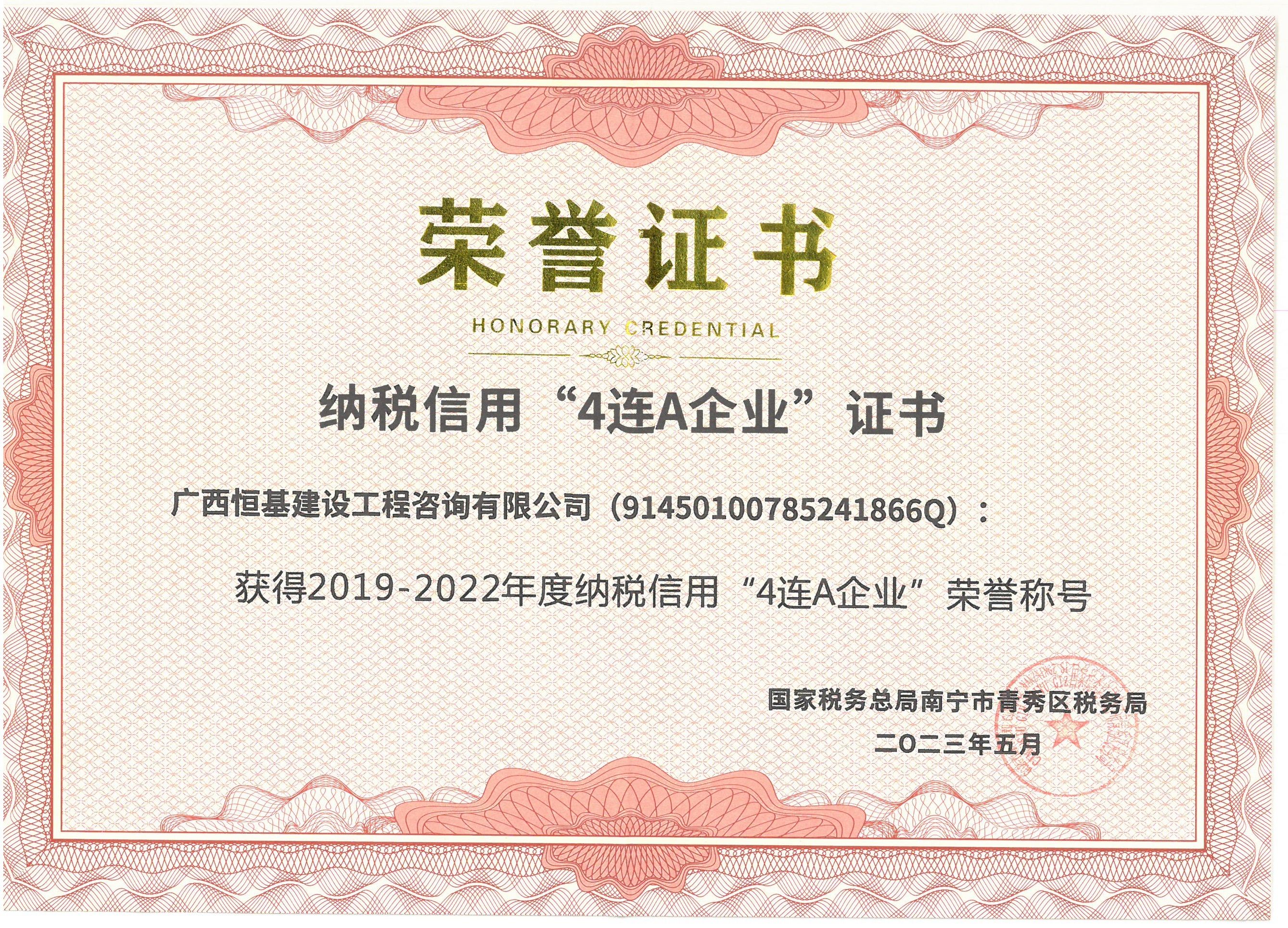 "2019-2022年度納稅信用“4連A企業(yè)”榮譽(yù)稱號(hào) "