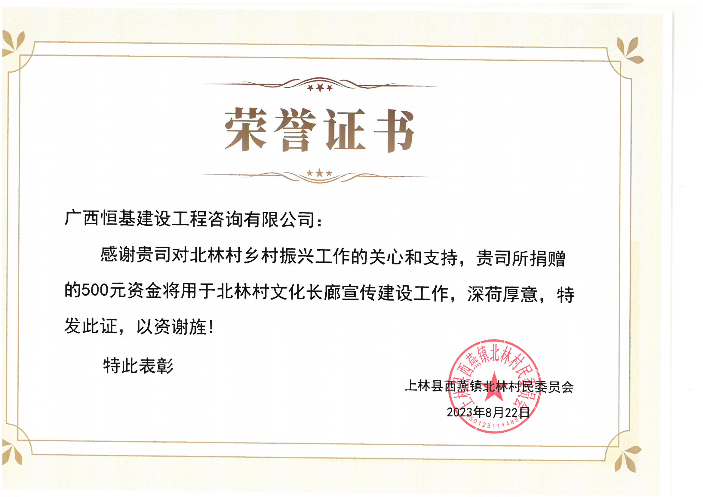 助力鄉(xiāng)村振興“北林村”捐贈(zèng)-榮譽(yù)證書(shū)