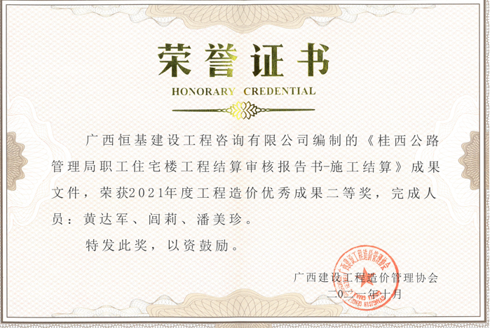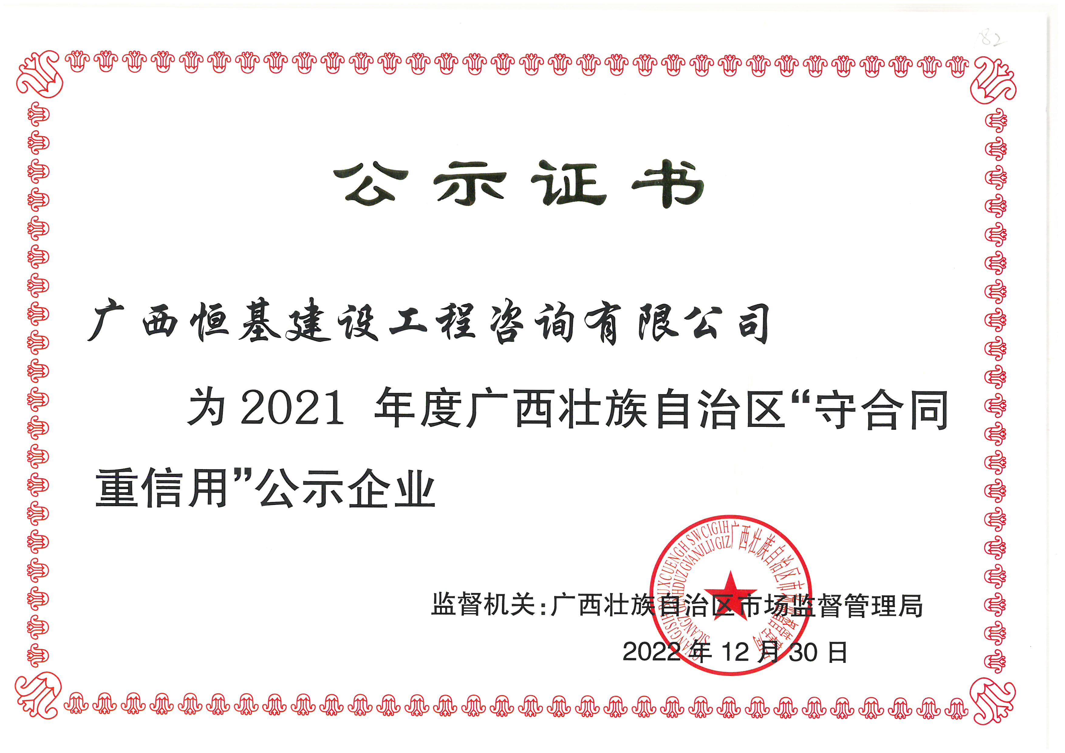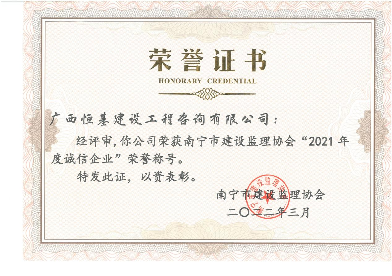 南寧市建設(shè)監(jiān)理協(xié)會“2021年度誠信企業(yè)”