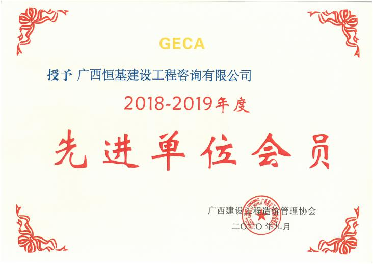 廣西建設(shè)工程造價管理協(xié)會2018-2019年度先進(jìn)單位會員