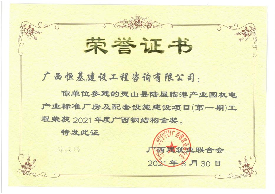瀘州老窖廣西欽州紅酒灌裝生產(chǎn)項(xiàng)目工程——2021年第一批廣西建設(shè)工程優(yōu)質(zhì)結(jié)構(gòu)獎