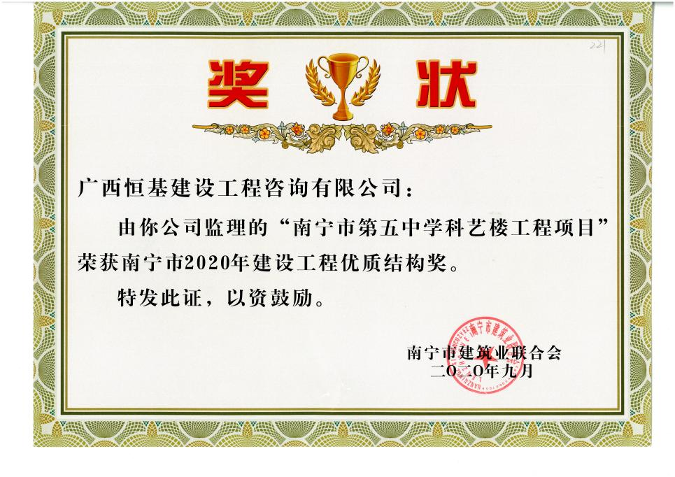 南寧市第五中學(xué)科藝樓工程——南寧市2020年建設(shè)工程優(yōu)質(zhì)結(jié)構(gòu)獎