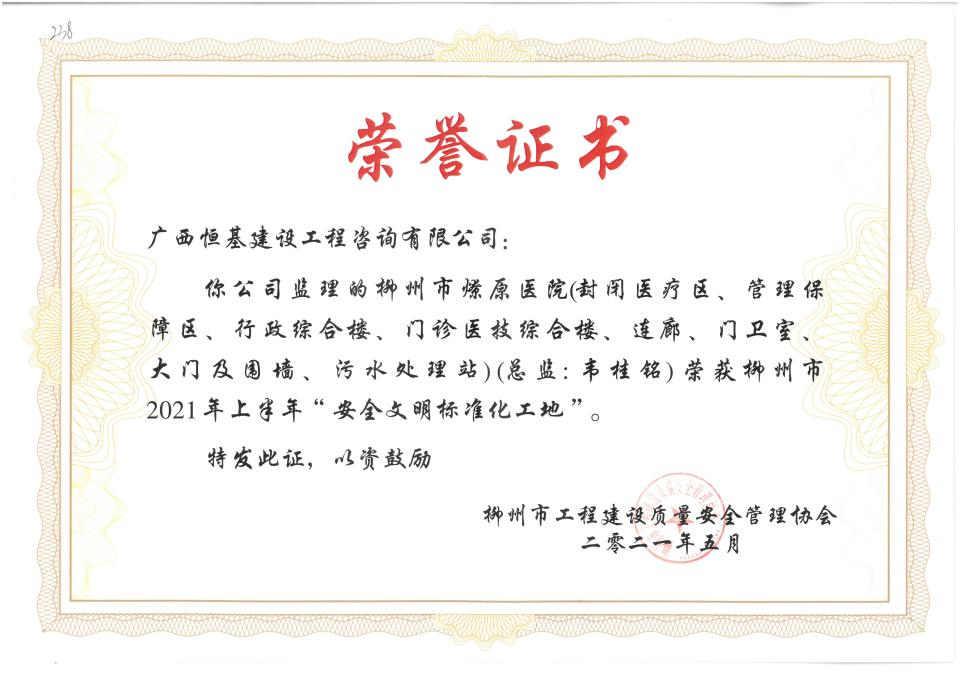 2021年上半年“安全文明標(biāo)準(zhǔn)化工地”